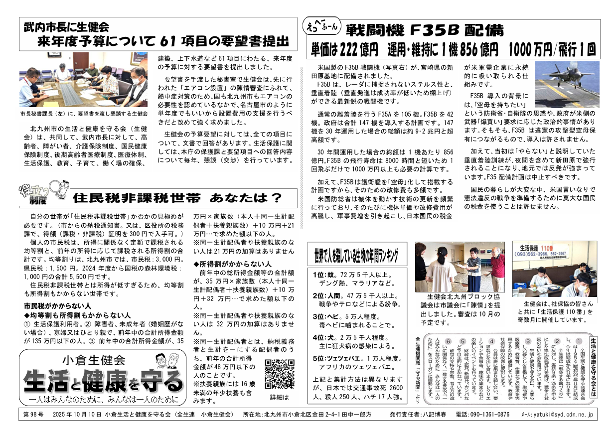 市民運動グル-プの情報公開 > 小倉生活と健康を守る会 > 小倉生活と健康を守る会 会報No98